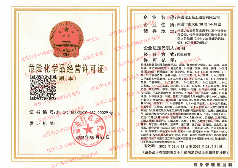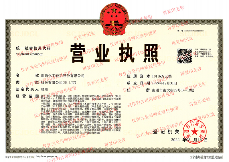 南通化工輕工股份有限公司成立于1963年7月1日, 1997年改制為股份有限公司,注冊資本10116萬元。公司自1963年成立以來,始終堅(jiān)持“誠信為本”的商信文化,向海內(nèi)外廣大供應(yīng)商按時足額履行付款、向廣大客戶按時按質(zhì)按量按價履行供貨、向金融機(jī)構(gòu)按時足額履行還款等,在商界享有很高聲譽(yù)。